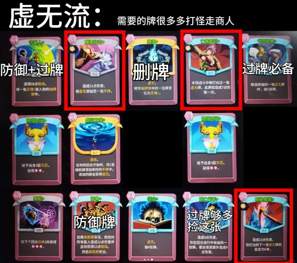 3、虚无流:需要的牌巨多,好处是自带删牌,不用着急去商店删