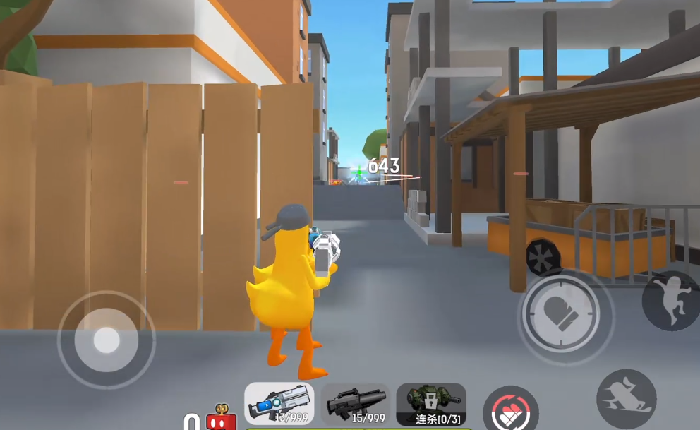 游戏中,玩家操控的是风格萌趣的动物角色,战场画面以高饱和度卡通渲染呈现,视觉压力小、辨识度高。移动由左侧虚拟摇杆控制;瞄准则通过滑动屏幕调整准心方向,系统自动触发蓄力式射击机制——当准星对准目标后,进度条自然充能完成即可发射,无需手动压枪或复杂微操。每局开始前可预设多把武器,初始装备默认为首选,切换时点击底部武器栏即可即时替换。此外,跳跃与滑铲不仅是规避火力的核心机动手段,也是快速穿越复杂地形的有效方式。当前版本共开放四名角色,各具专属技能与属性倾向,玩家可根据战术定位自由搭配。