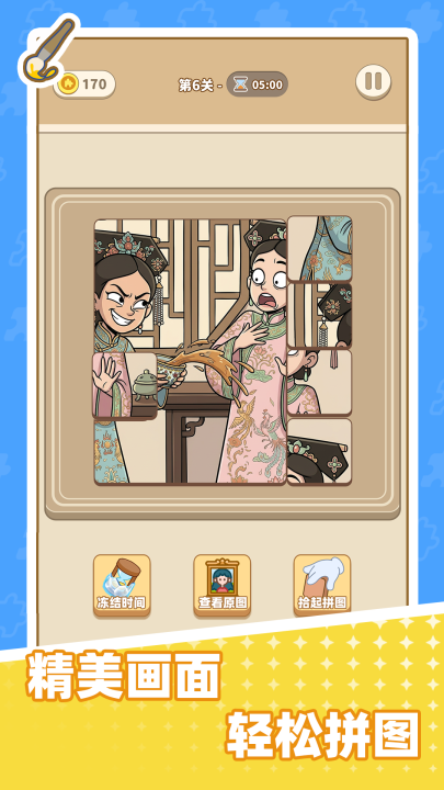 游戏以极具张力的美术体系为核心竞争力,题材编排跳脱常规风景类拼图框架。清宫秘档、微恐悬疑、地府奇观等风格迥异的主题被系统性整合进统一视觉语法中,每幅原图均经专业美术团队多轮打磨,确保画面信息密度与叙事隐喻并存。