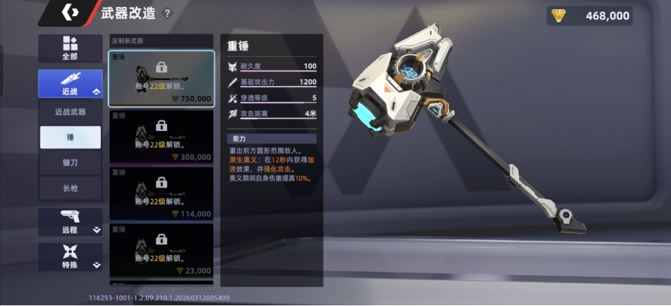 游戏里有四大近战武器它们分别是:雷切、镰刀、重锤和长枪