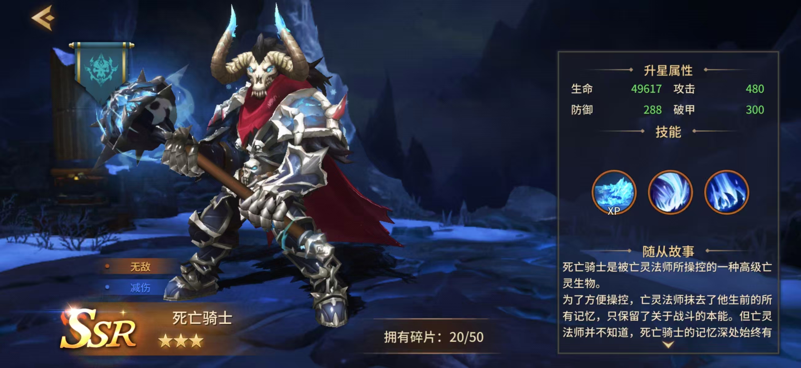 死亡骑士是《地牢猎手6》中定位为SSR品质的核心前排伙伴,作为亡灵法师职业所召唤的高阶亡灵单位,其不具备生前意识,仅保留纯粹的战斗直觉与强大体魄。接下来将从角色设定、技能机制及实战价值三方面,系统解析该角色的实际表现。