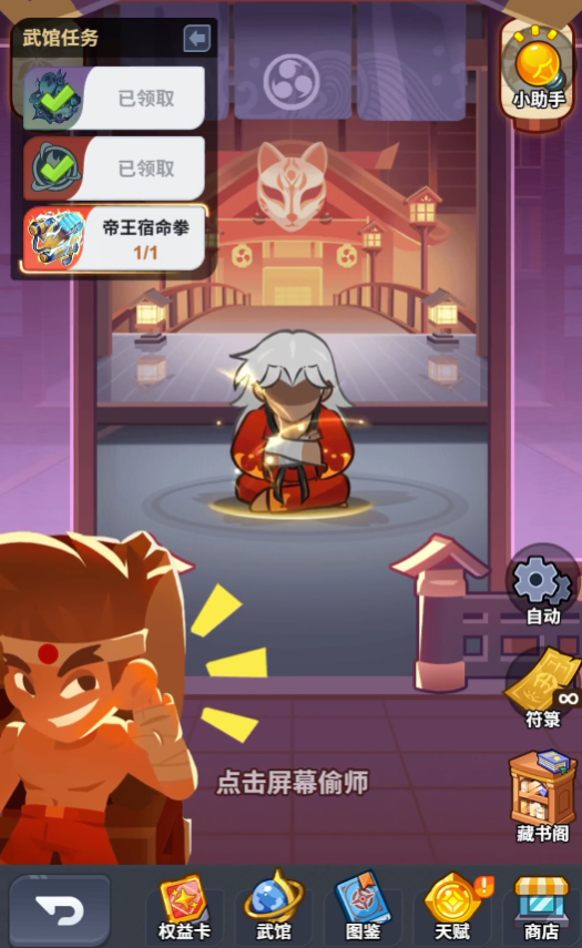完成主线剧情后,玩家可在主界面底部区域直接进入武馆系统。当前共开放6个可挑战武馆,每个武馆均设有固定任务栏,每日可通过消耗饭团进行“偷师”操作,获取对应图鉴碎片与基础资源。该机制为图鉴收集提供了稳定、可持续的产出渠道。