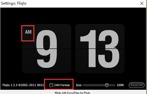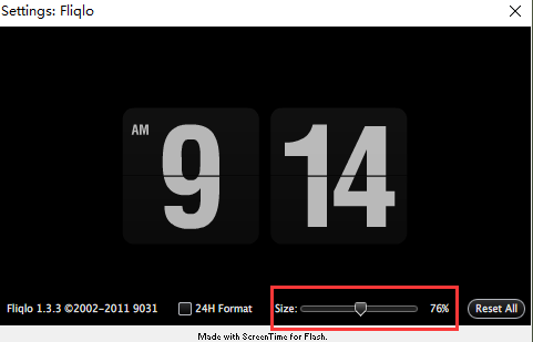 使用fliqlo作为屏保时,可以选择小时制和调整大小,还可以设置静止多长时间后开启屏保。在全屏屏保模式下,fliqlo翻页时钟屏保以白色的数字搭配黑色的背景,通过翻页来表示时间的改变。
