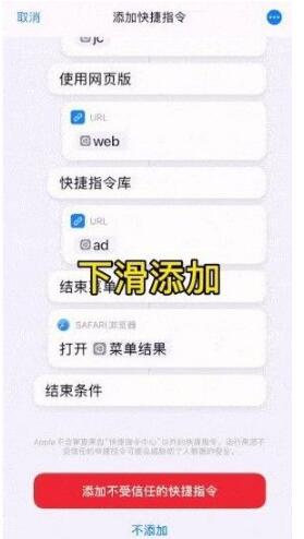 4、获取之后会进行跳转,转跳的页面中往下滑添加快捷指令。