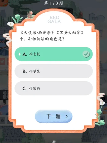 16、《大侦探·拾光季》《黑蛋大劫案》中,孙怡饰演的角色是?怡老板