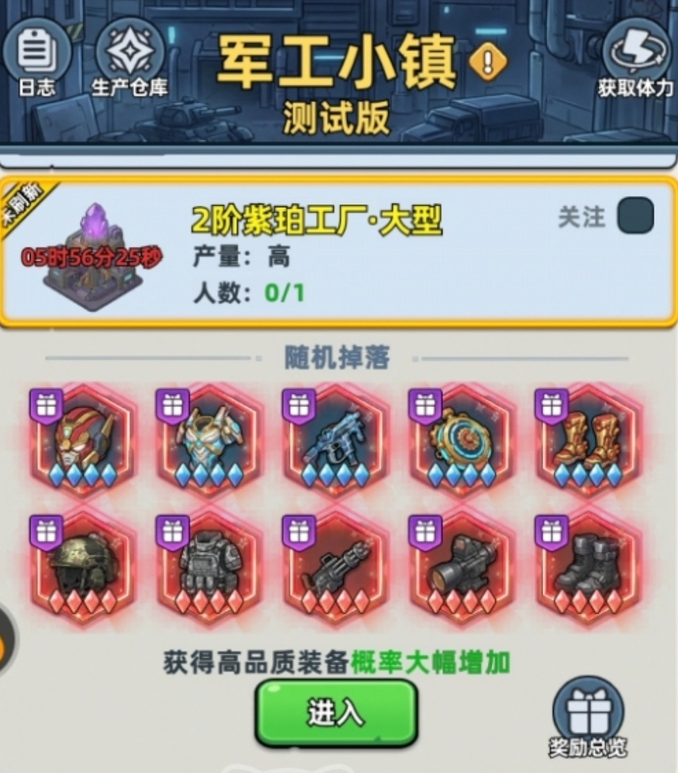 该系统需通过“军工小镇”玩法解锁。玩家需先完成敌对势力清剿任务,成功接管装备制造工厂后方可启动装备生产流程。不同品阶的工厂对应差异化产出:高阶工厂可制造具备更高基础属性与成长潜力的装备。玩家需结合当前队伍定位(如输出、承伤、辅助)选择适配工厂,并统筹每日固定体力配额——体力消耗不可逆,用尽即当日无法继续生产;亦可通过消耗指定资源进行体力补充,以维持装备迭代节奏。