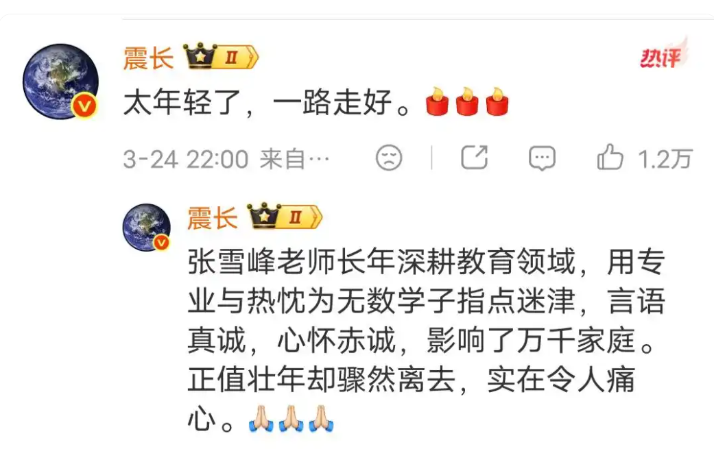 2026 年 3 月 24 日 15 时 50 分张雪峰死了一词霸榜各大平台热搜,网友纷纷在讨论怀念这一人物,但是还是有网速比较慢的朋友好奇网红张雪峰死亡为何霸榜热搜,全平台哀悼?这个人是谁?干嘛的?下面是做的一些整理,一起看看吧。