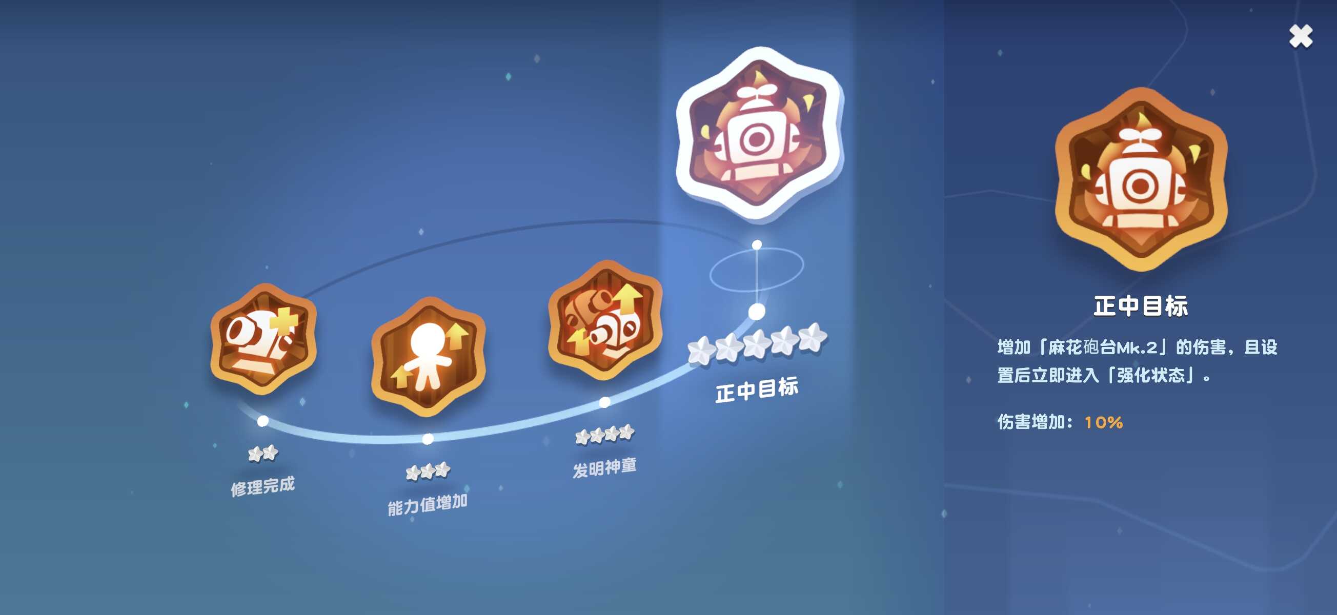 实战中,MK1与MK2炮台可形成时间差配合:MK1提供高频压制,MK2专注削弱土系抗性,二者叠加显著放大队伍整体伤害效率。随着星级提升,绝招炮台的基础伤害同步增强,且高星状态下部署即进入强化状态,进一步保障输出稳定性与节奏可控性。