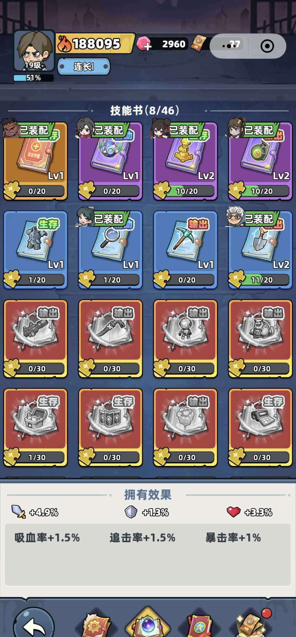 角色成长由两大核心维度构成:等级提升与技能体系构建。技能书不仅决定技能效果的强弱与释放逻辑,更通过基础属性加成(如生命、暴击、抗性等)进一步明确角色在团队中的职能定位。因此,依据队伍配置与战斗需求选择适配的技能书,是进阶玩法的关键环节。