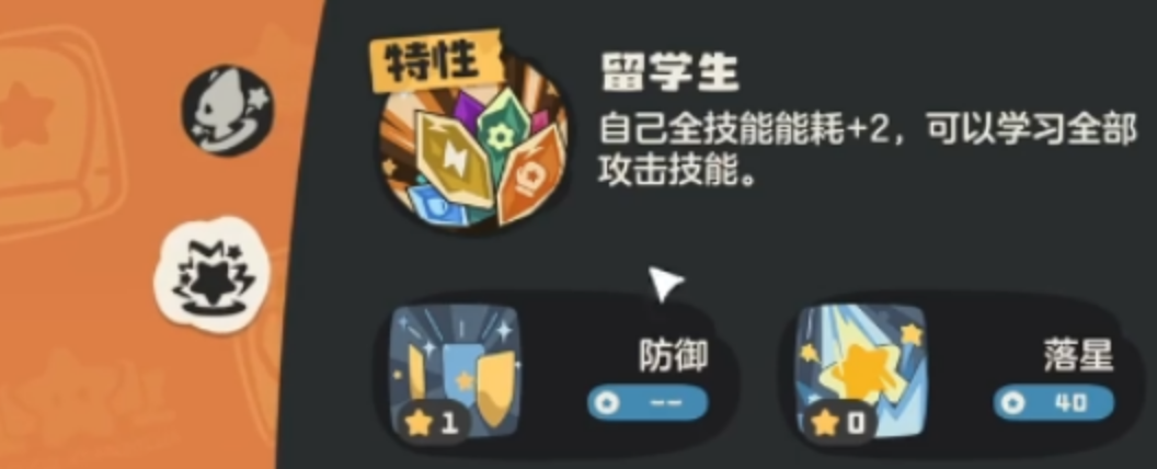 初始可习得技能包括落星、寸拳、气波与防御技。其中,落星为单体物理伤害技能,承担基础输出职能;寸拳兼具伤害与能量回复效果(恢复1点能量),是维系技能循环的关键节点;气波作为魔法伤害手段,有效补足属性打击面;防御技可削减70%所受伤害,在承伤或反打阶段具备显著战术价值。