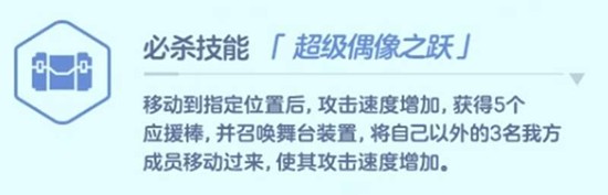 必杀技“超级偶像之跃”是她的核心战术技能。美祢会先移动至指定位置,提升自身攻速并获得5个应援棒,随后召唤一个舞台装置,将另外三名队友牵引至自己身边,并提升他们的攻击速度。这个技能的核心在于集结队伍与爆发输出,适合在需要集火或快速突破时使用。在蔚蓝档案的实战中,需要注意技能释放的位置,避免将队友拉入危险区域。