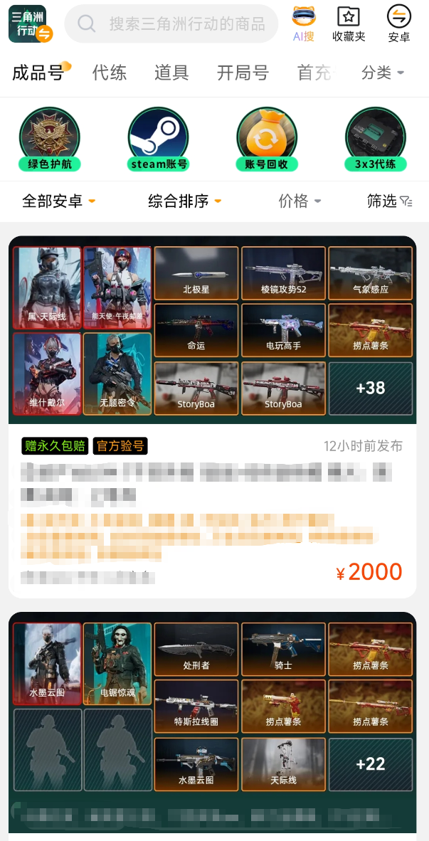 针对《三角洲行动》账号交易场景,设立专属交易专区,支持按战力段位、装备配置(含“大红”“非洲之心”等关键词条)、账号等级、稀有皮肤持有情况等多维度智能筛选。用户输入具体需求后,系统自动聚合匹配结果,显著提升比价效率与决策精度,避免传统渠道中信息碎片化、真伪难辨的痛点。