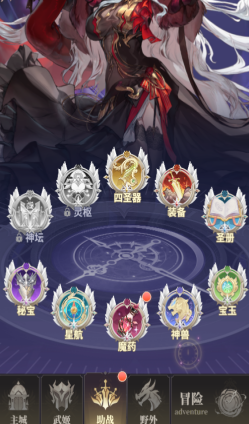 四圣器作为助战系统的首要组成部分,与公会玩法深度绑定。玩家可通过参与公会活动获取初始圣器,后续通过升星、洗练等方式逐步强化。每件圣器均归属特定阵营,其词条属性可针对性适配不同战斗场景;配合装备系统的锻造、强化与品质升级机制,武姬阵容的整体输出、生存与功能性得以系统性提升。
