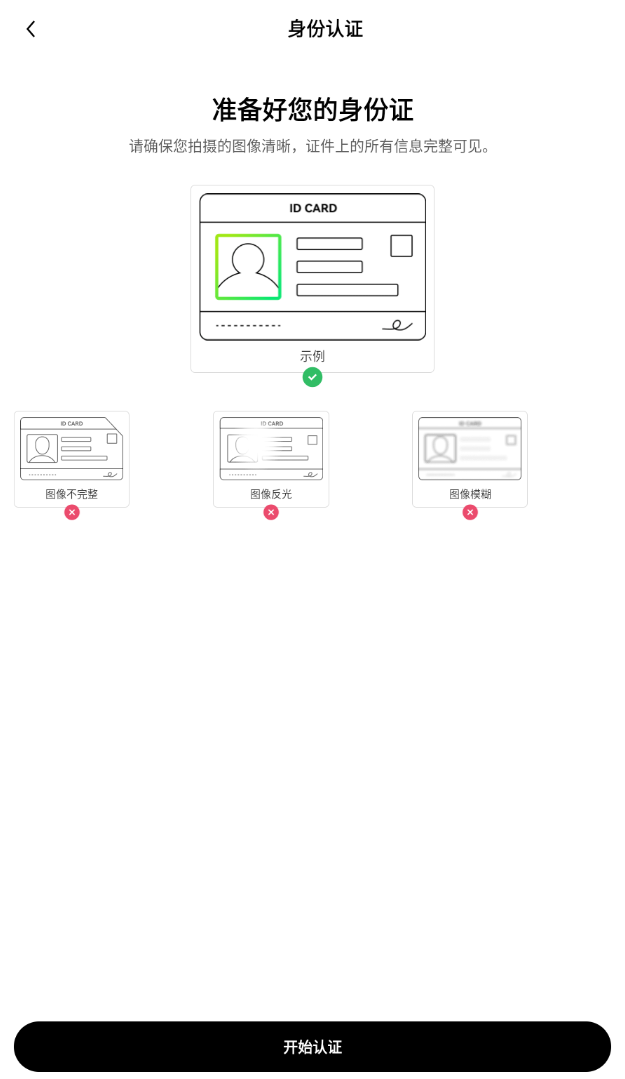 完成上述步骤后即可进入身份验证环节,根据系统提示上传相应证件材料。