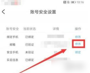 5、最后点击邮箱这一栏的“修改”就能解绑邮箱了。