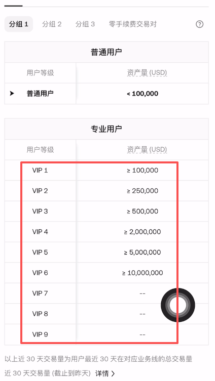 | 用户等级 | 挂单费率 | 吃单费率 | 达标条件 |