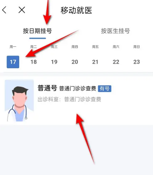 选择预约挂号日期,点击挂号类型。