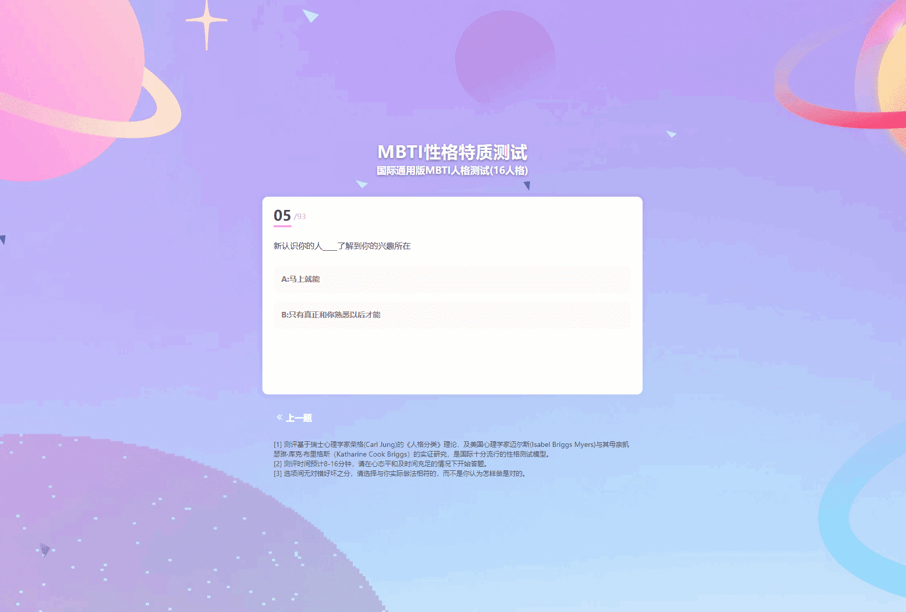 进行 sbti 人格测试免费完整版测试非常简单。你只需在相关的正规测试平台上找到该测试链接,点击进入测试页面。然后,认真阅读每一个问题,按照自己的真实想法和实际情况进行回答。整个过程大约需要花费你一些时间,但都是值得的。在回答问题时,不要刻意迎合或隐瞒,保持诚实是获得准确结果的关键。