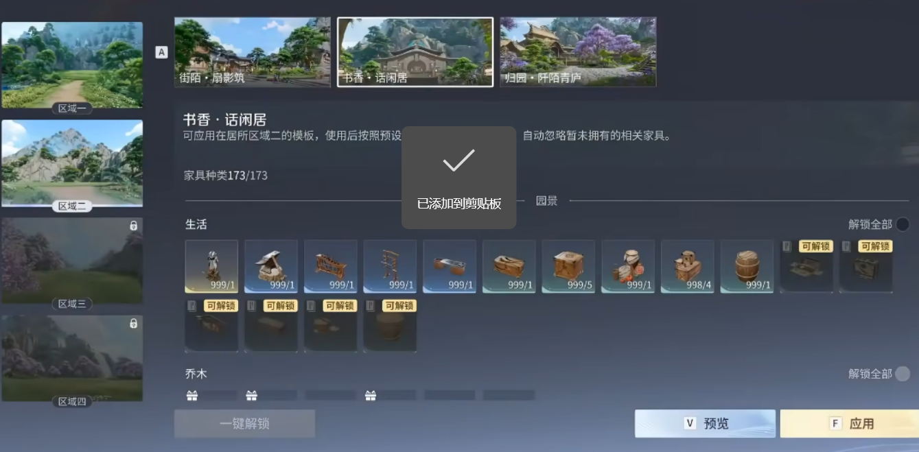 室内装饰体系强调高自由度表达。家具商店提供涵盖汉唐至明清风格的实体物件,大量采用传统榫卯工艺建模,细节还原度高。公测版本取消硬性网格约束,支持无级旋转、任意缩放及材质切换,玩家可突破风格边界实现混搭设计,空间布局逻辑由创意主导而非系统限制。