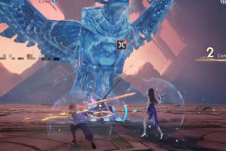 不过该boss的头部是存在弱点的,所以建议玩家们直接腾空进行连击,在连击的过程中不仅能提高伤害,还能规避很多的普通攻击哦。