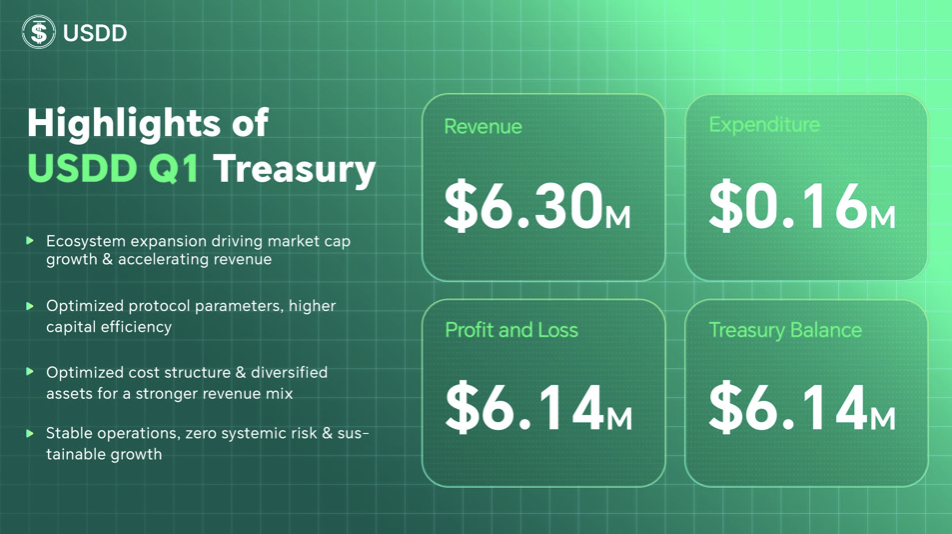 USDD 2026年第一季度业绩全面提速:收入与利润显著增长,总金库余额升至1391万美元
