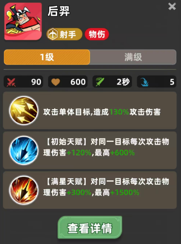 后羿是整套五射体系的绝对引擎。其被动技能可大幅提升全体射手攻速,且自身拥有强力单体爆发,是决定阵容上限的关键角色。建议开局通过首充解锁,优先升至三星;站位必须置于最后一排正中,两侧搭配具有护盾或位移保护能力的辅助型单位。若敌方布阵含高机动刺客(如兰陵王、阿珂),需规避其切入路径——前排可替换为廉颇(提供嘲讽控场)与孙膑(施加减速与护盾),形成双层反制结构,确保后排输出环境安全。