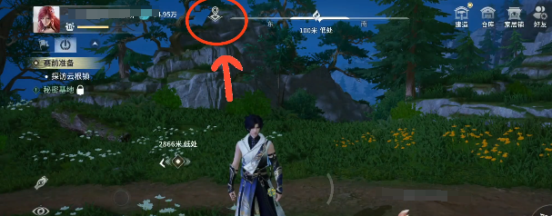 世界大厅并非位于传统UI惯用的左下或右下区域,而是集成于屏幕顶部的横向导航栏中。该区域包含方向指示与功能入口双重作用,点击其中的地图图标即可呼出全屏大地图。此外,屏幕正中央还设有一条横向状态指示条,轻触此处亦可即时展开地图界面,操作逻辑简洁直观。