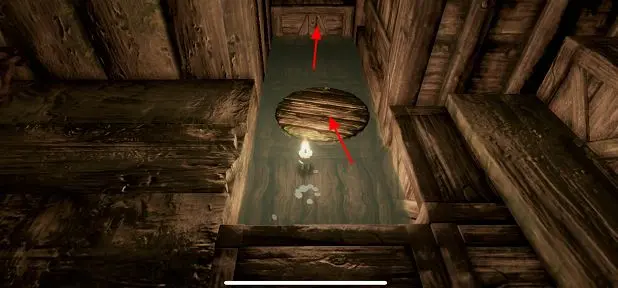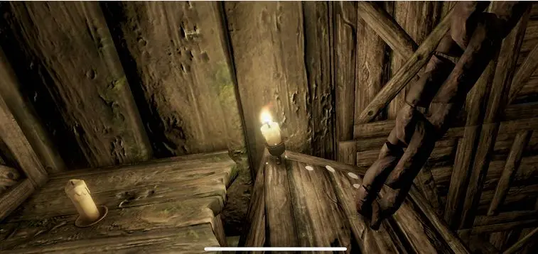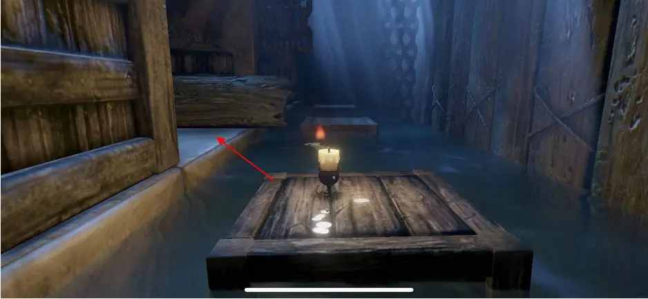 3、推动漂浮的木盖板然后跳上去,这里藏着一根蜡烛