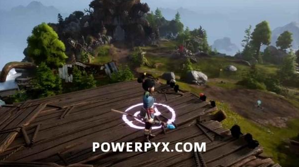 在鲁弗斯牛击碎巨石后,来到顶部的木制平台,按【L1】脉冲射击所有飞行目标。